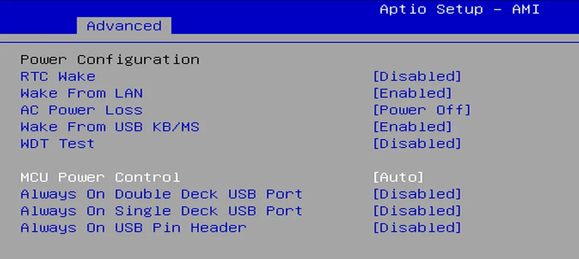 | Disabled | Running Mode: Sleep Mode: Hibernate Mode: Shut Down Mode: |
