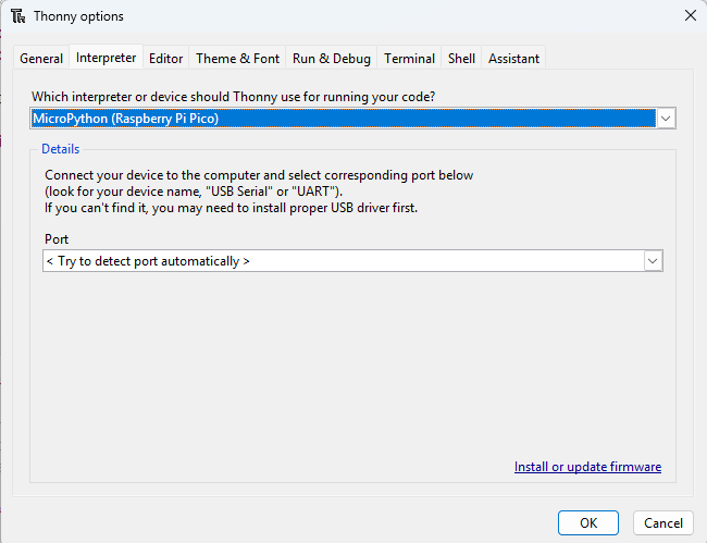 This section demonstrates how to use the RP2040 with MicroPython via the Thonny IDE. Follow these steps: